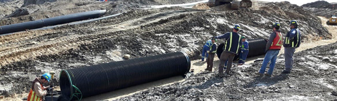 From February 2017 until June 2017, the Fort McKay Group of Companies Earthworks division worked on a project to construct an overflow seepage ditch with a concrete precast structure. Located on the Albian site at the Jack Pine tailings area, the project involved creating a ditch to handle an overflow flood, and direct it to another holding area. This was done by assembling precast concrete structures to form an overflow inlet and outlet and required the organization of cranes and personnel. There was also a 500m section of corrugated plastic pipe that was put together and placed in a trench to finish off the system.